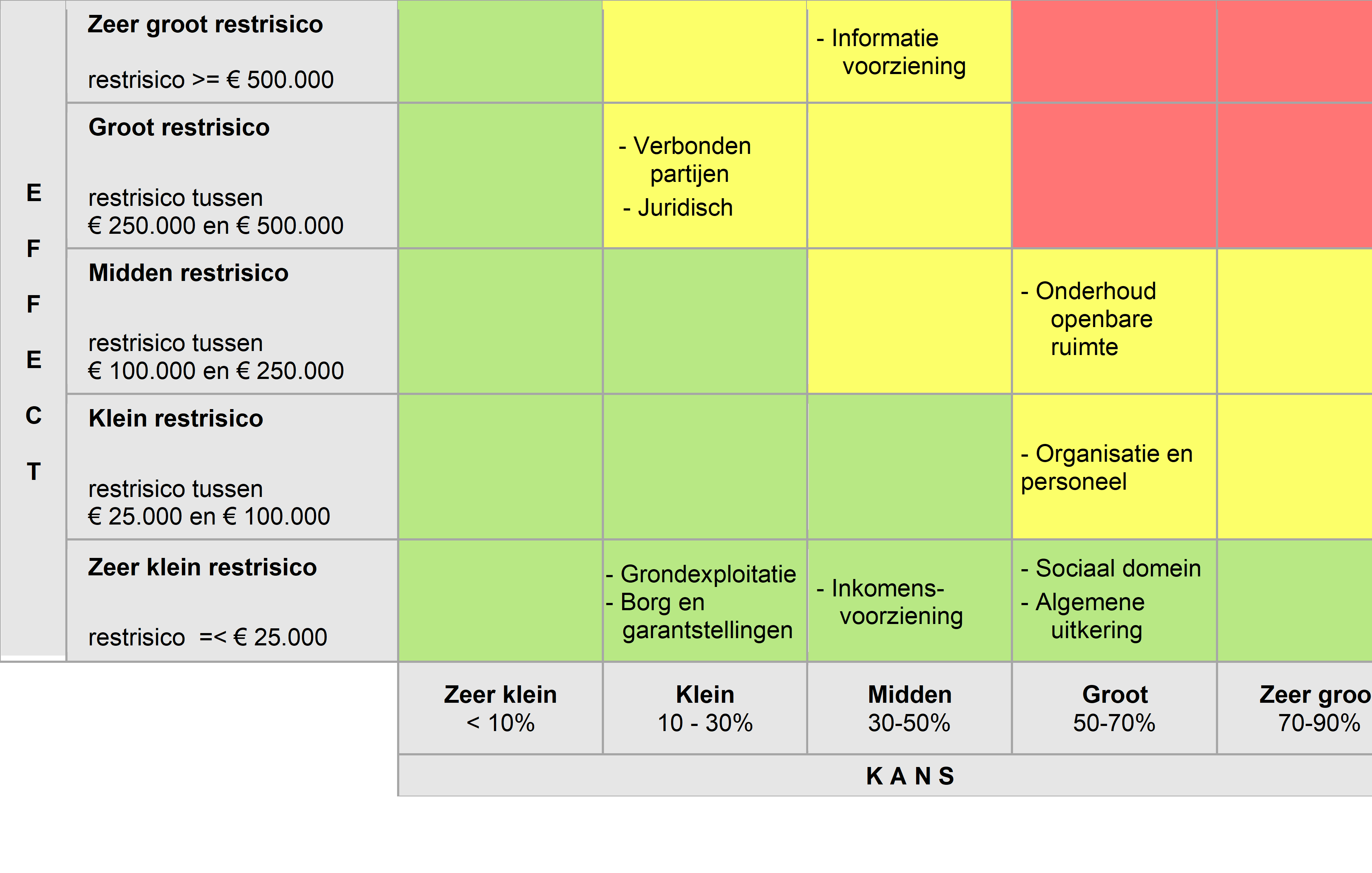 Op basis van de MJOP's zijn voorzieningen gevormd, waaruit het groot onderhoud wordt bekostigd voor het gemeentehuis, de binnen-en buitenzijde van de gymzalen, de brandweerkazernes, kinderopvang St. Crusiusweg, de wijkgebouwen, de bibliotheken, gemeentewerf Kweekweg, de Milieustraat Vaassen, gebouwen begraafplaatsen en het Streekarchief. Het dagelijks onderhoud wordt bekostigd uit structurele budgetten die in de begroting zijn opgenomen. De geraamde financiële middelen in de begroting zijn voldoende om het huidige niveau in stand te houden.